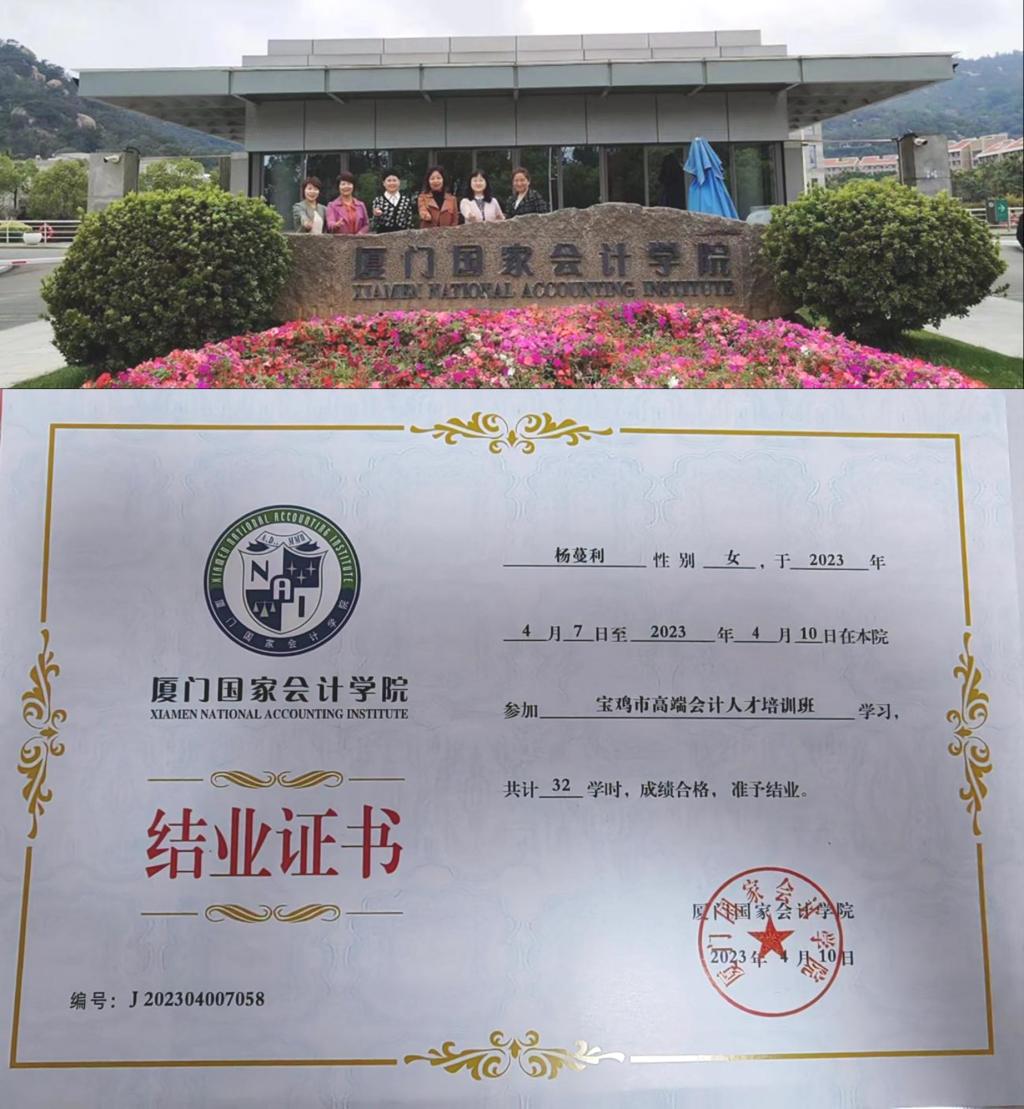 2023年4月6日—11日,我院会计系硕士研究生导师杨蔓利副教授参加了宝鸡市财政局在厦门国家会计学院举办的“宝鸡市高端会计人才培训班”培训学习,来自宝鸡高校财税类教师、会计事务所负责人以及企业财务总监、证券公司投资分析师等参加了培训。