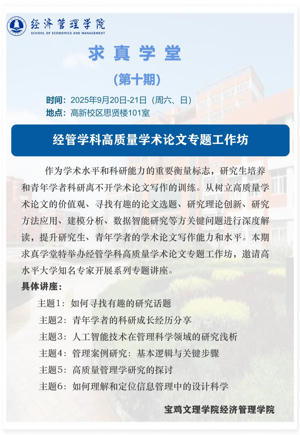 求真学堂—第10期 经管学科高质量学术论文专题工作坊