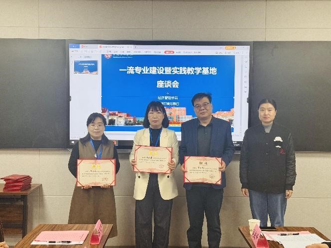 会上还进行了2024年9728太阳集团校外实践指导教师聘任仪式,党委书记邓茹为三位新增实践教学基地教师颁发聘书并合影留念。