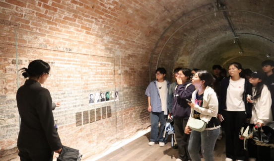 在遗址讲解员引导下,师生党员沿历史脉络参观三大核心展区。窑洞工厂内,保存完好的原始纺织机械、泛黄的生产台账与工人工资单据引发深入思考。2023级经济学专业学生党员刘一凡驻足台账前,结合专业知识感慨:“此前在课本中学习‘战时经济’总觉抽象,而今亲眼看到‘月产1200吨棉纱’的翔实记录,才真正理解民族企业家与工人群众如何在战火中撑起产业脊梁,这便是抗战胜利背后坚实的工业支撑。”