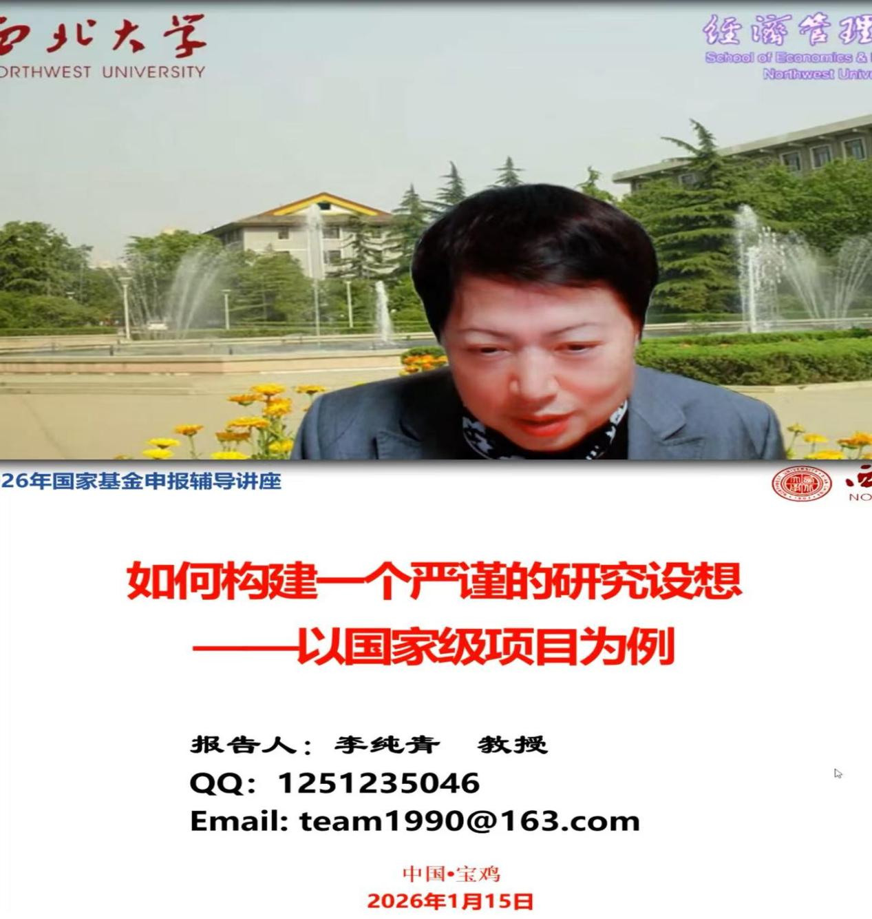 李纯青教授围绕《如何构建一个严谨的研究设想——以国家自科项目为例》,她结合自身研究案例精准总结提炼出构建研究设想的六大核心要素,为申报人搭建起系统化、规范化的构思框架。同时结合自身丰富的项目评审与申报实战经验,分享了国家级项目申报的统筹规划方法,重点解析了选题与国家战略需求的精准契合路径、申报书结构优化技巧、评审流程及专家核心关注焦点等内容。