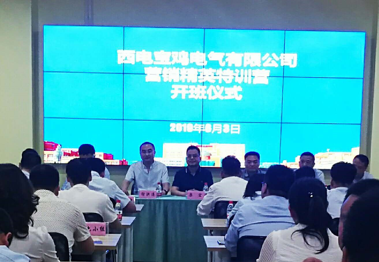 西电宝鸡电气有限公司2019年营销精英特训营6月3日下午在我校尚能楼经济管理实验实训中心开班。校党委副书记栾宏出席开班仪式并讲话,西电宝鸡电气有限公司总经理谢洪涛、副总经理魏安乐、人力资源部部长李国龙以及我院党总支书记郝晓炜、院长张伟峰等参加开班仪式,开班仪式由我院副院长刘晓科主持。
