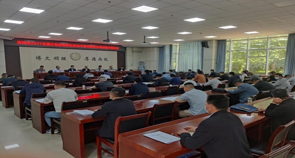 5月19日上午,我院承办的宝鸡市2021年度计划分配军转干部岗前专业培训在高新校区甘棠厅开班。校党委副书记栾宏、宝鸡市委组织部副部长牛虎强出席开班式,开班式由市退役军人事务局局长郑雅峰主持。
